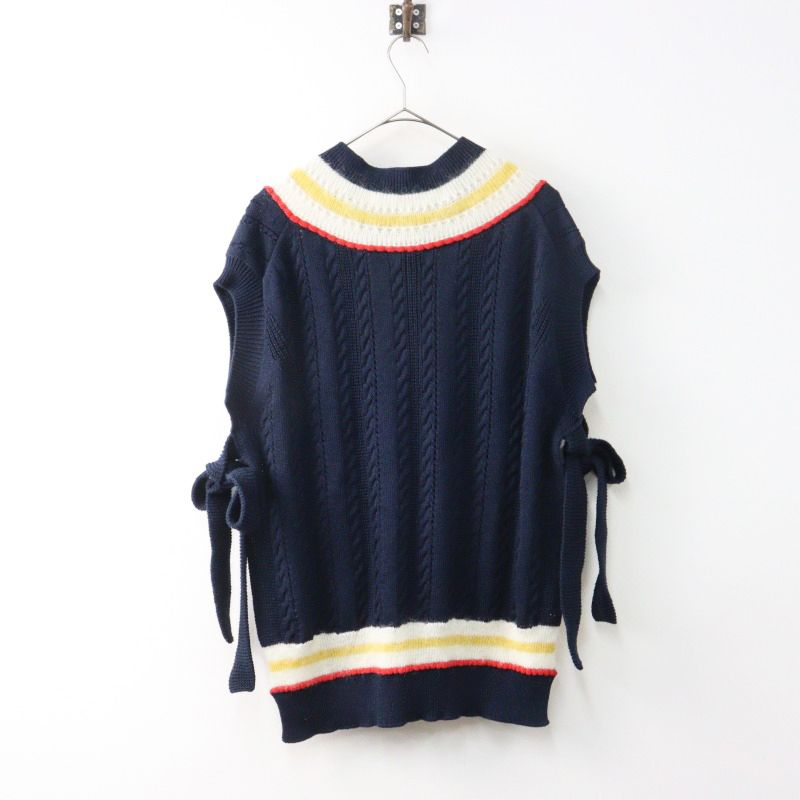 2025AW タオ コムデギャルソン TAO COMME des GARCONS パターン切替 Vネック ベスト S|ネイビー リボン ケーブル 2400014537994 CHICKLITPLUS_COM